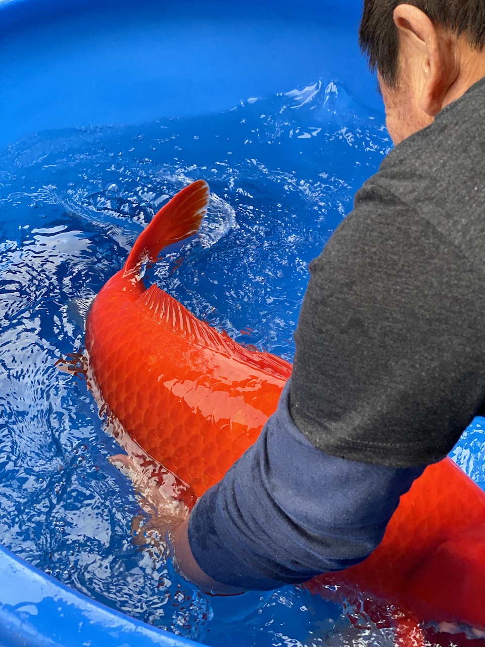 Today was a great day, one of our clients from Miami did his very first Harvest in Japan. He has handled Koi before