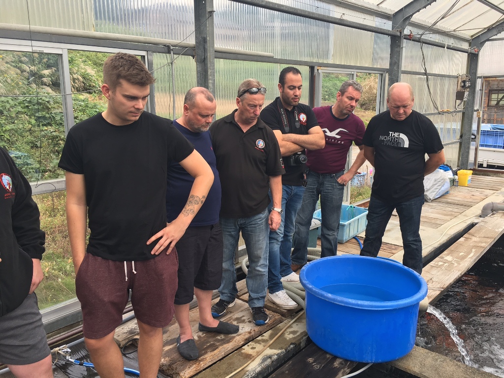 We also have Koi belonging to clients in this pond, clients who are now with us. We would never usually do a party of guests as big as this one but because they all wanted to see their Koi harvested, it was the only choice! Its a good job they all know each other.
